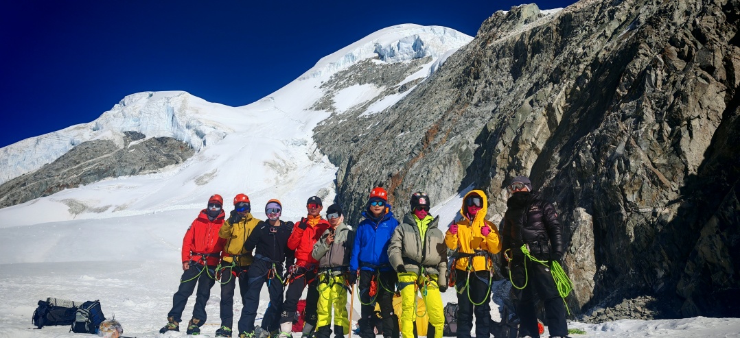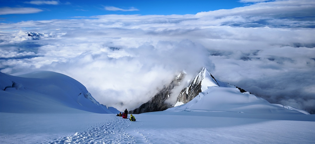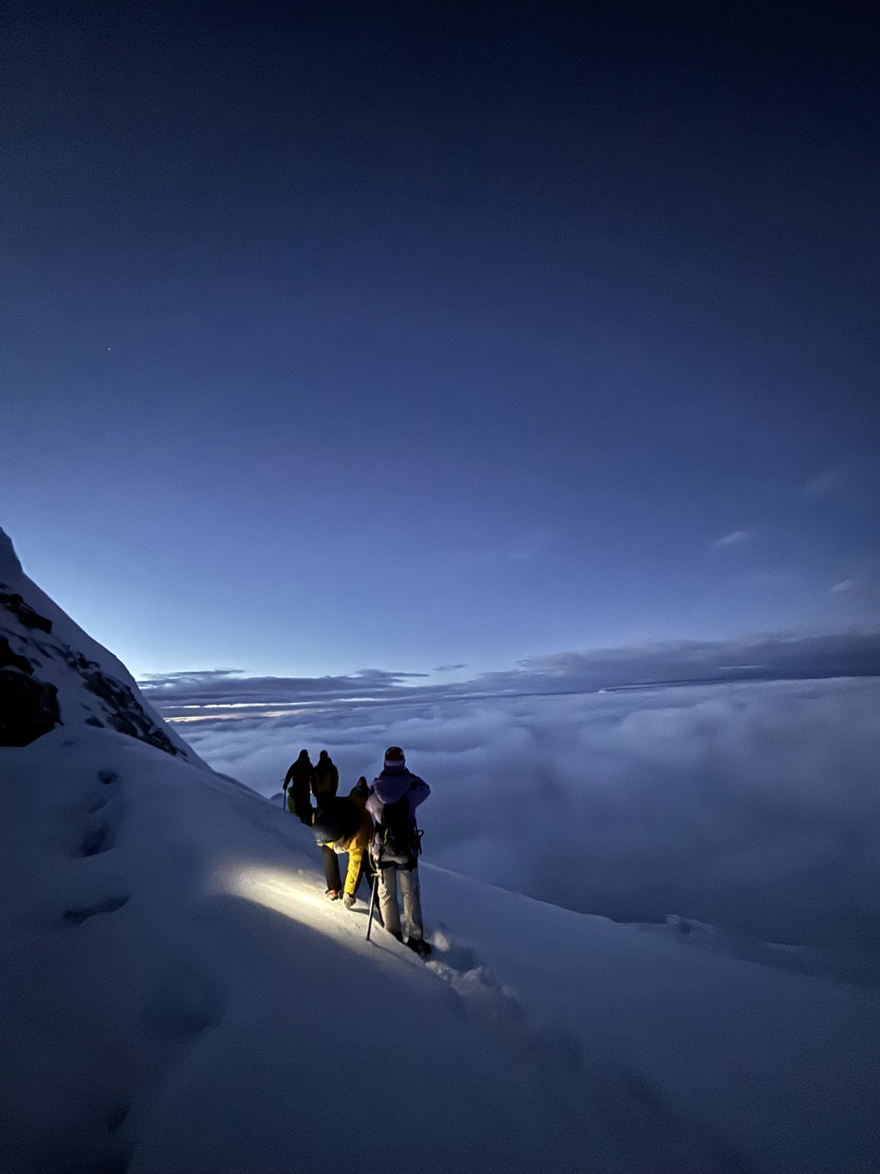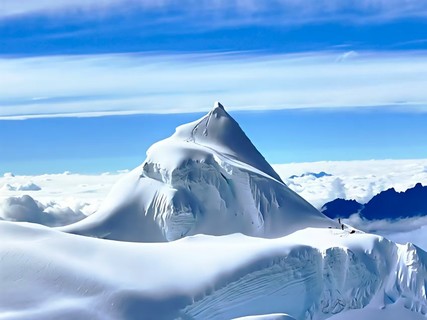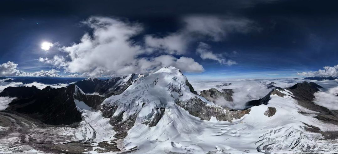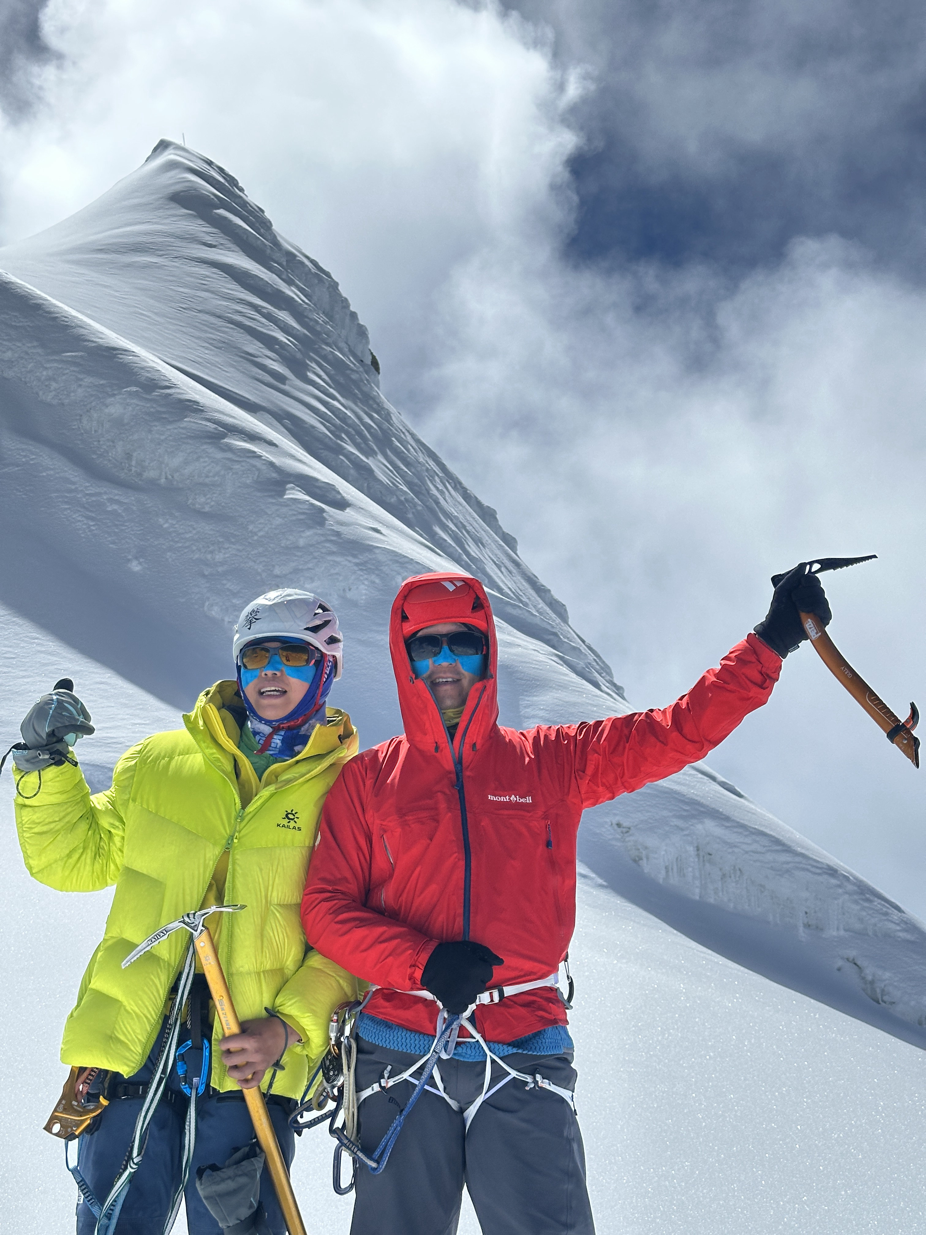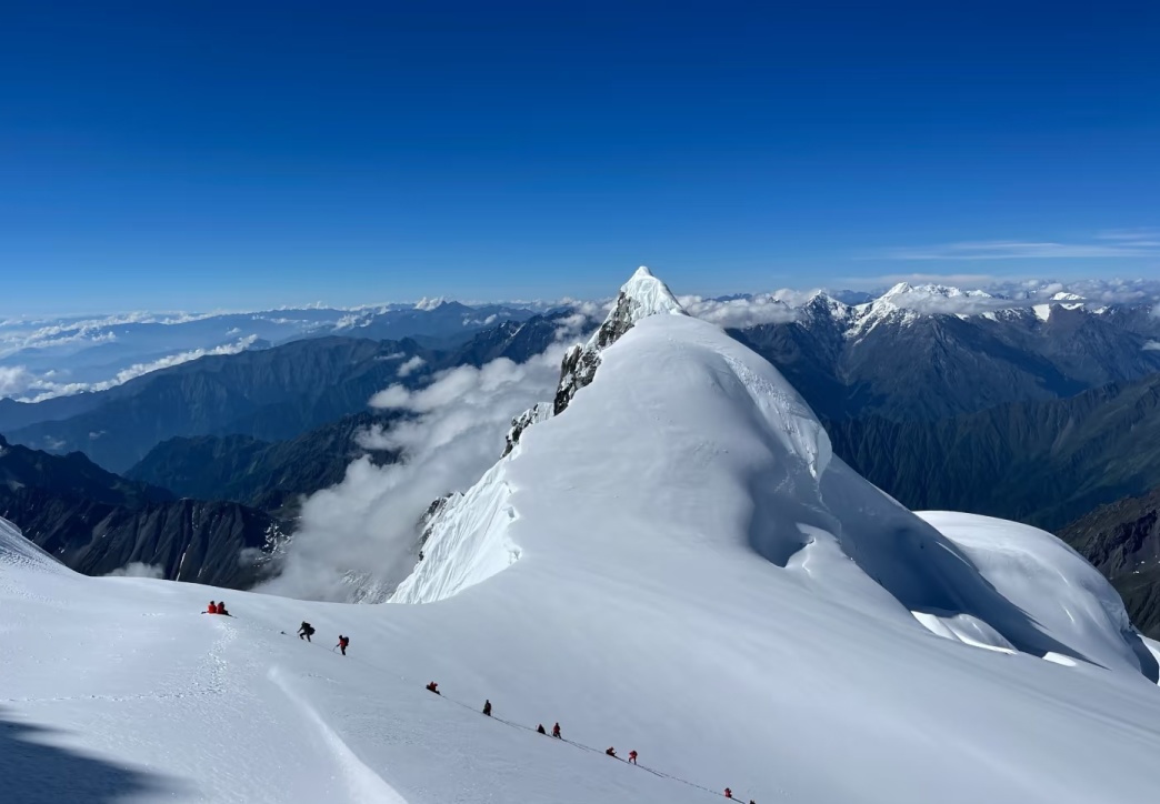 凌晨3点左右起床吃早餐后开始冲顶,全程主要为技术路段,路段以冰裂缝、冰壁和冰坡为主。最后需翻越两个冰壁,随后登顶6410米的峰顶。成功登顶之后下撤至C1营地。