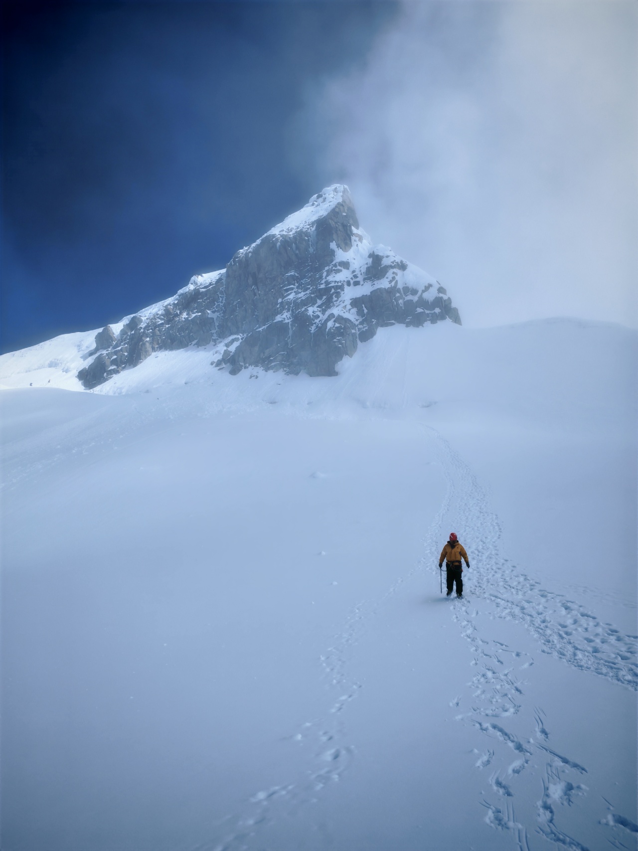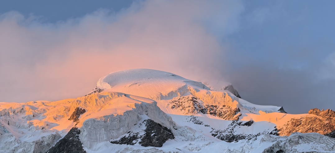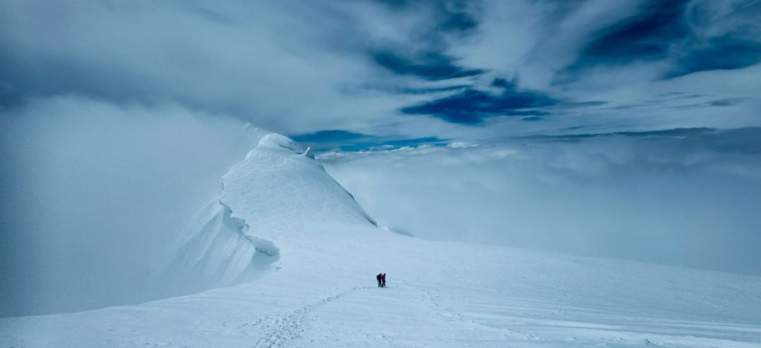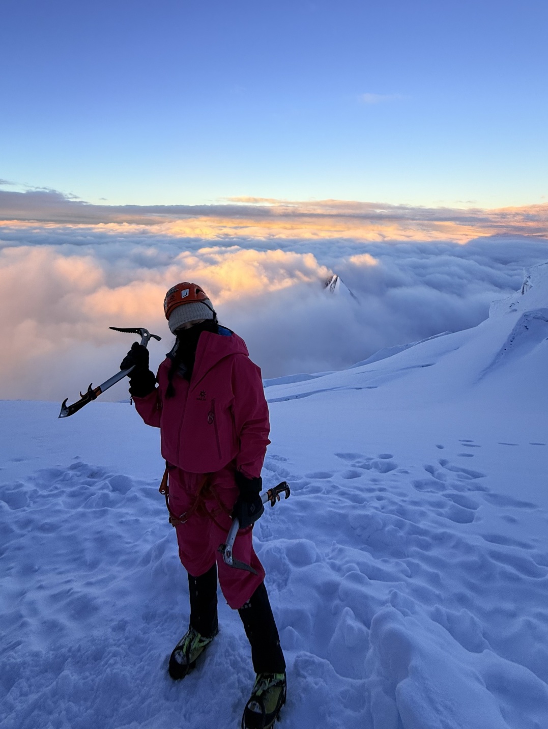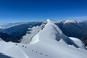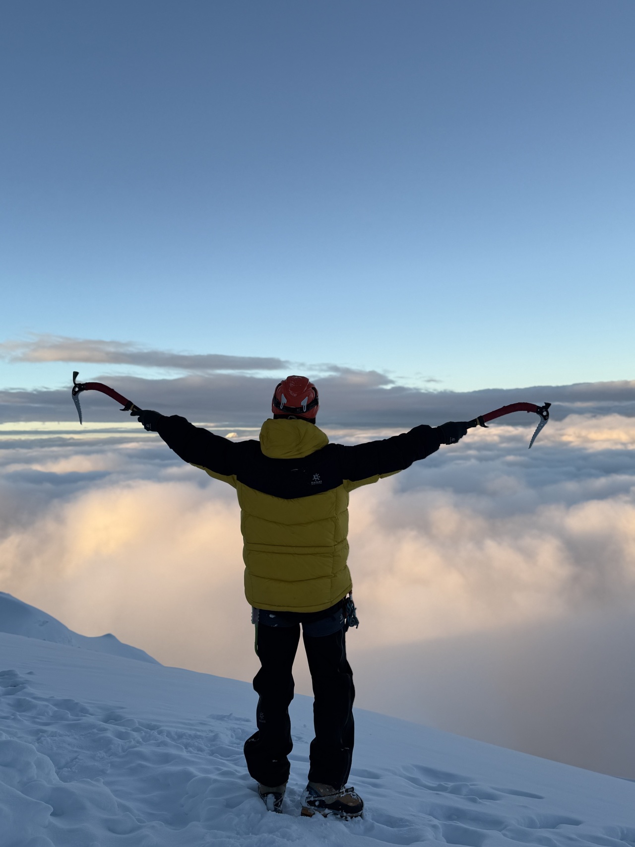 凌晨3点左右起床吃早餐后开始冲顶,全程主要为技术路段,路段以冰裂缝、冰壁和冰坡为主。最后需翻越两个冰壁,随后登顶6410米的峰顶。成功登顶之后下撤至C1营地。