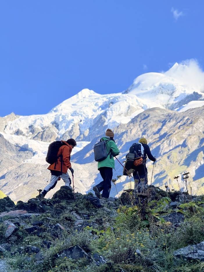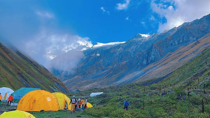 早餐后乘车40分钟左右到达徒步起点,徒步约6小时到达大本营。攀登者自行背负今日路上必备物资,其他装备统一运输至大本营。今日海拔上升较大,请注意保暖,多喝热水。