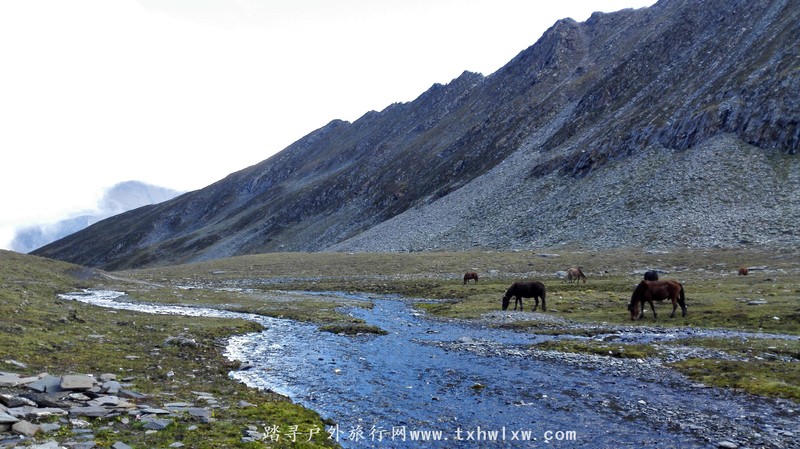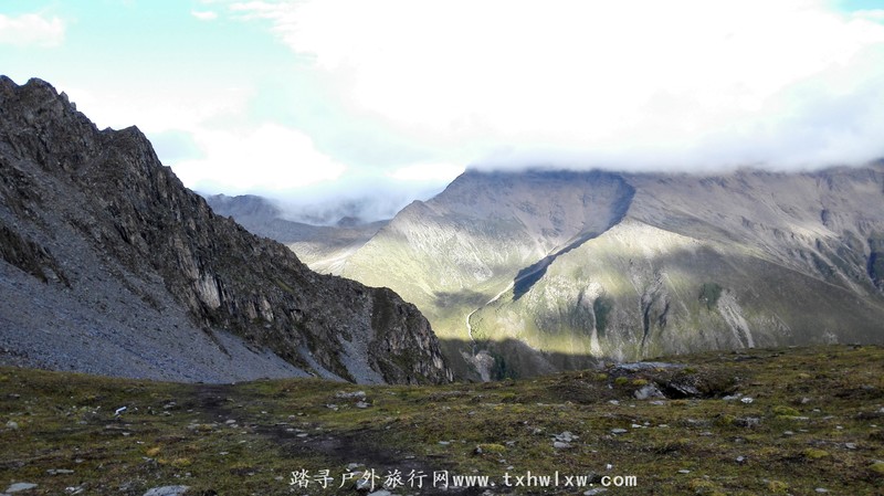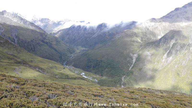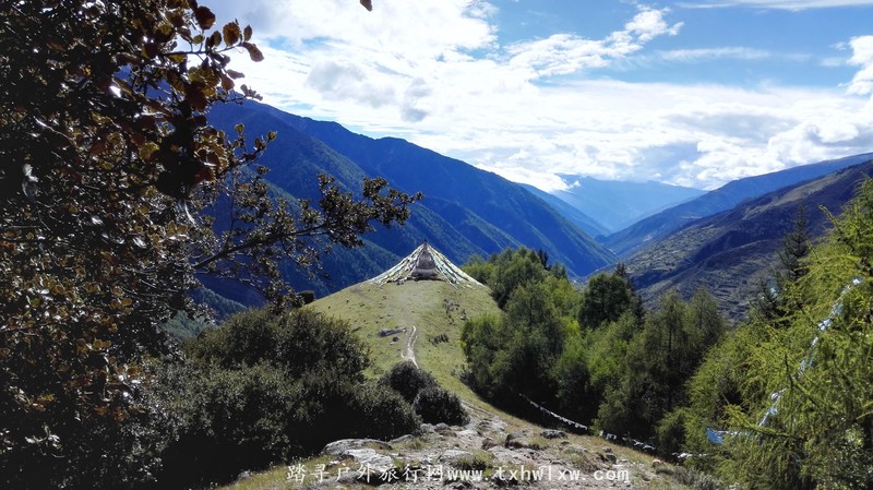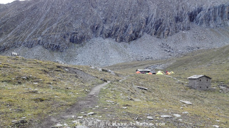 一直到小五把我拉到营地,我都无暇顾及风景。我看不清脚下的路,只有急促的呼吸和一个类似于行走或挪动的概念。甚至无所谓休息,反正休息与否都是一样的呼吸不到氧气。这一切都是我想要的,我很高兴。小五一边笑我的喘息毫无规律,一边说:"坚持!快到了!"而我一点都不喜欢"坚持",我一直觉得一件事当你想到要"坚持"其实就该放弃了,你还能有多享受这件需要"坚持"的事?我不需要坚持,我喜欢这件事,我想要爬这座山,这其中的痛苦都是去看二姑娘所必需的经历,是我想要的,我很高兴。前方一片沼泽(当时我还不知道什么是沼泽,下山时才知道),看到石头房子和帐篷,噢,我到了。