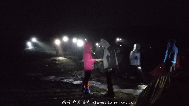 半夜醒来,其实也早无睡意,在睡袋中挣扎半宿,看着表看着表终于熬到了两点半,已经能听到隔壁帐篷中聊天收拾东西悉悉索索的声音。起床,出帐,二峰大本营大部队的人马迎面而来。