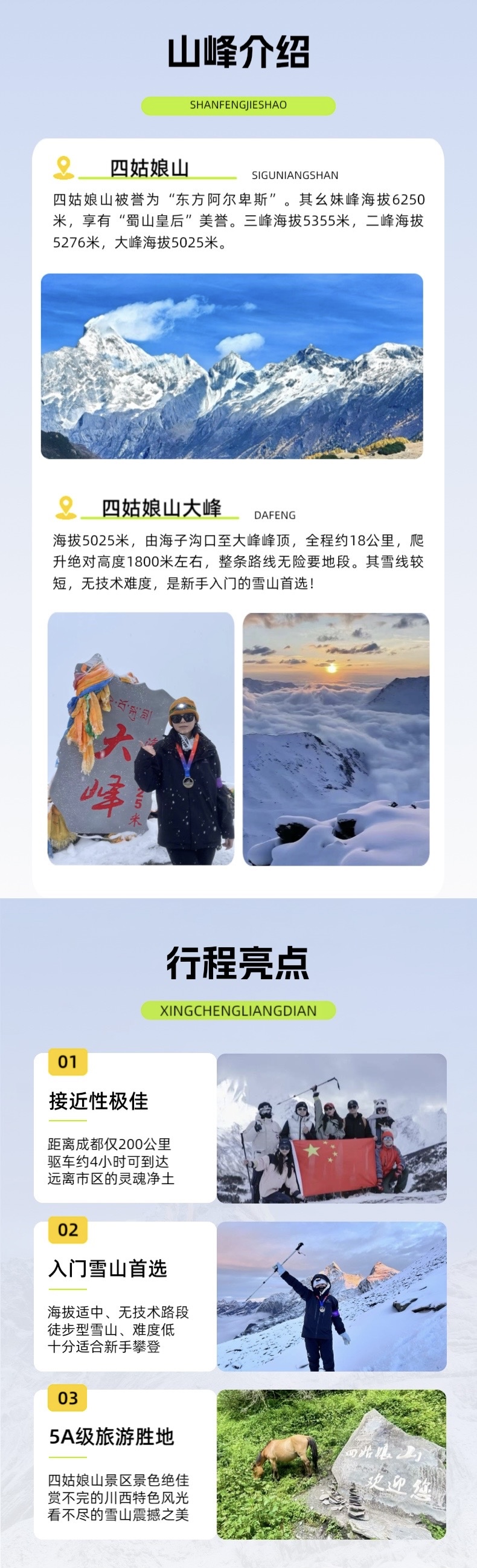 初级高海拔雪山攀登、户外锻炼、高山花海、巴朗山云海,海子沟风光、雪山摄影等