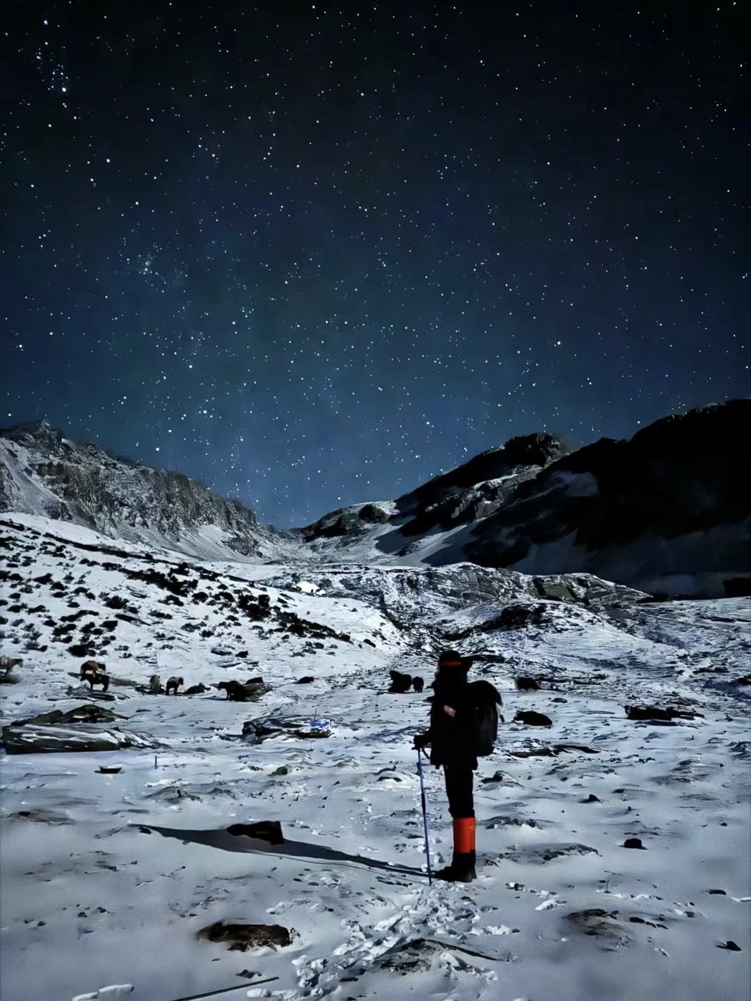 ▪️个人技术装备使用:冰爪、头灯、雪套、登山杖、户外头盔等攀登装备