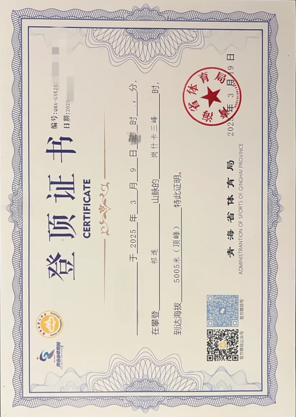 ②青登协认证登顶证书(邮费自理)