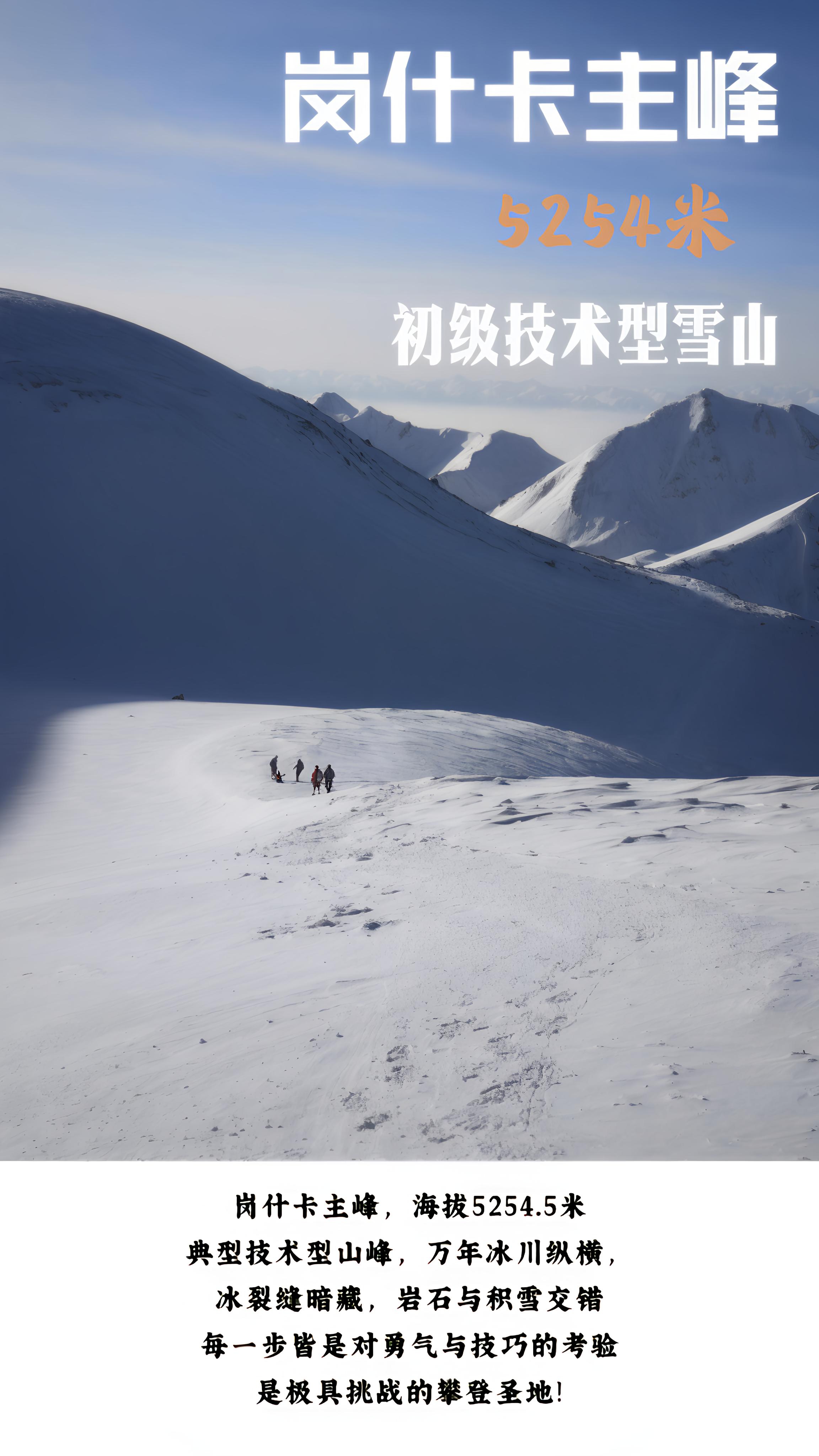与三峰相比,海拔5254.5米的岗什卡主峰作为一座技术型山峰,攀登难度相对更高。