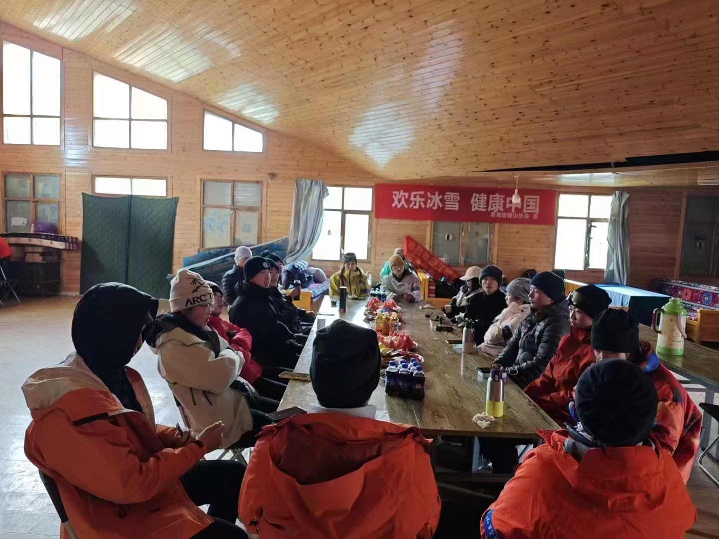 今日各地的山友到门源县集合,统一入住我们安排的酒店。彼此认识,领队将检查装备。晚上与队友一起参加欢迎晚宴。
