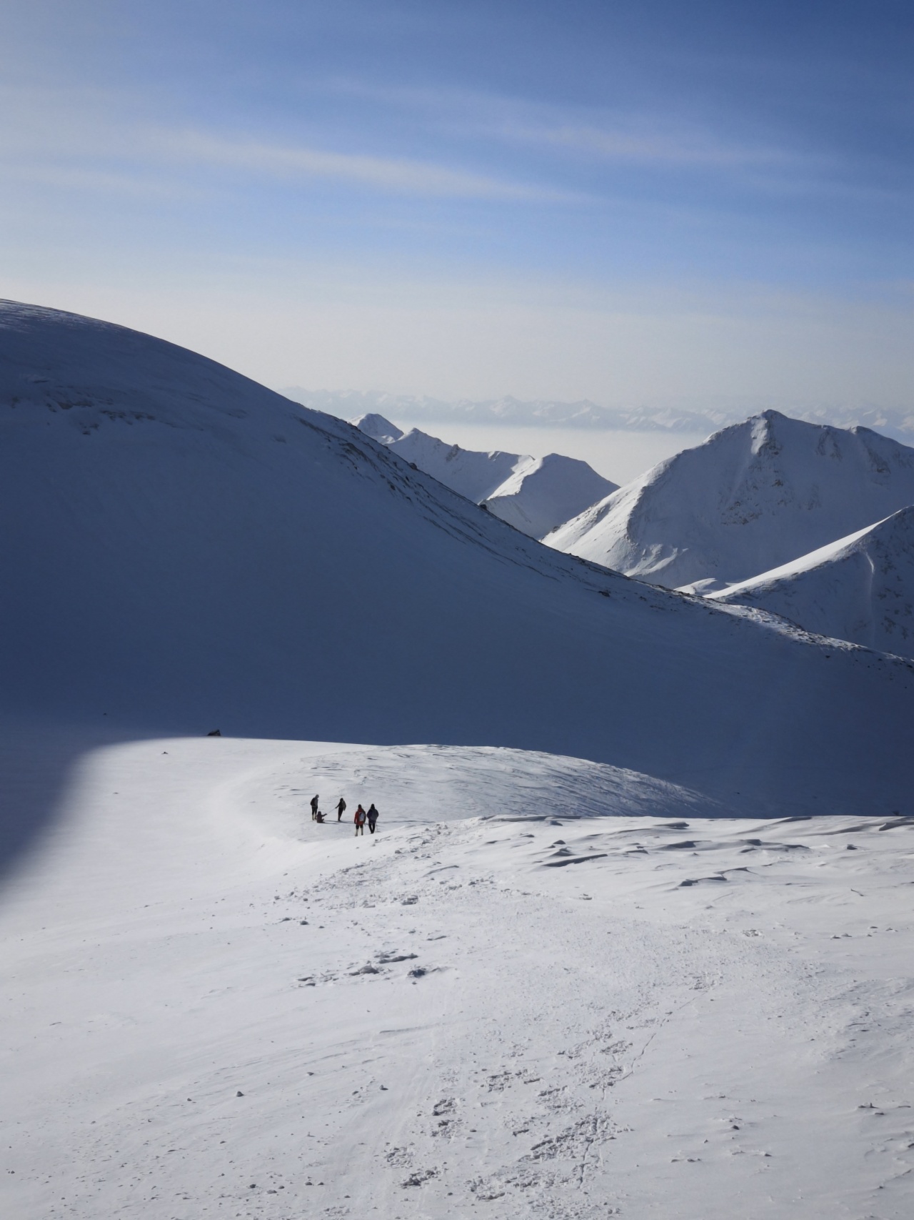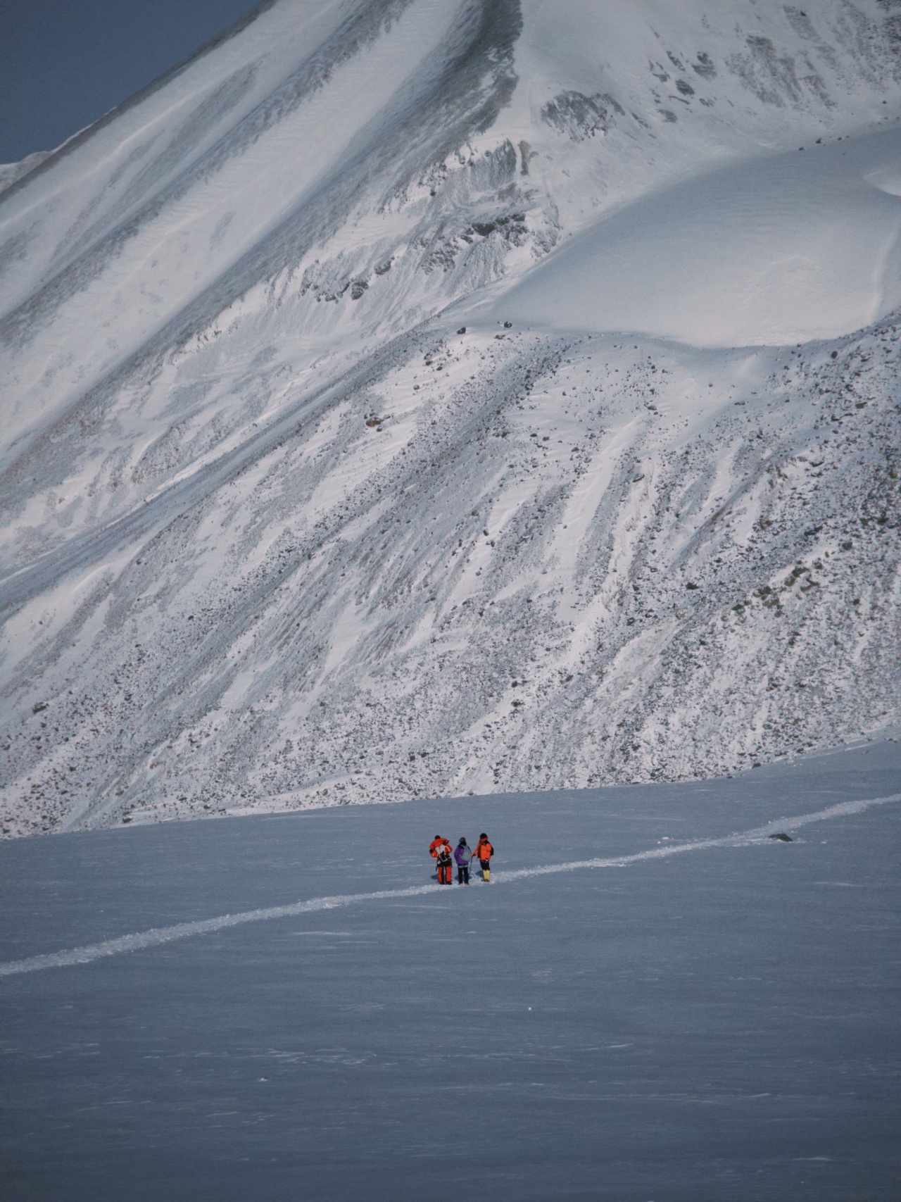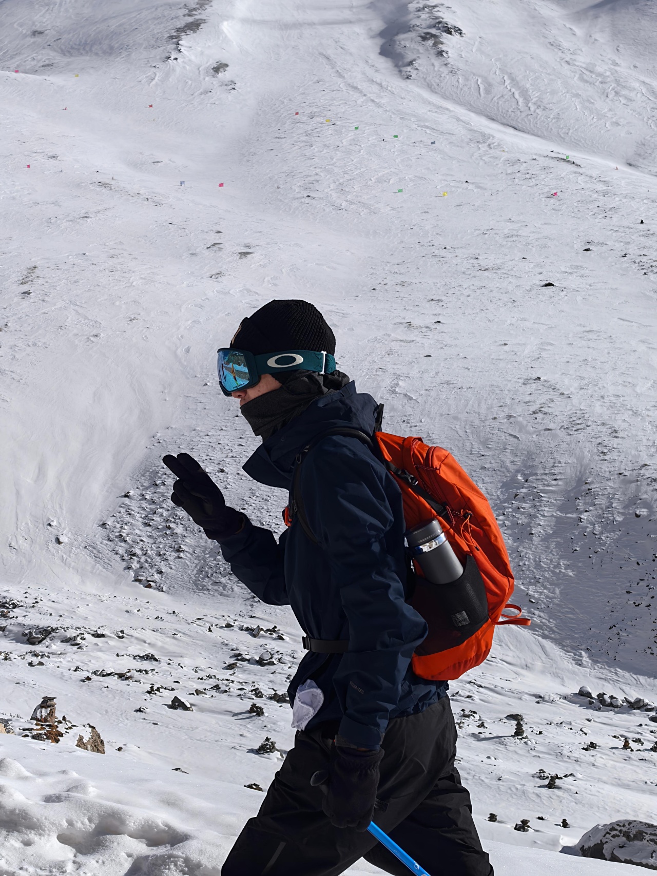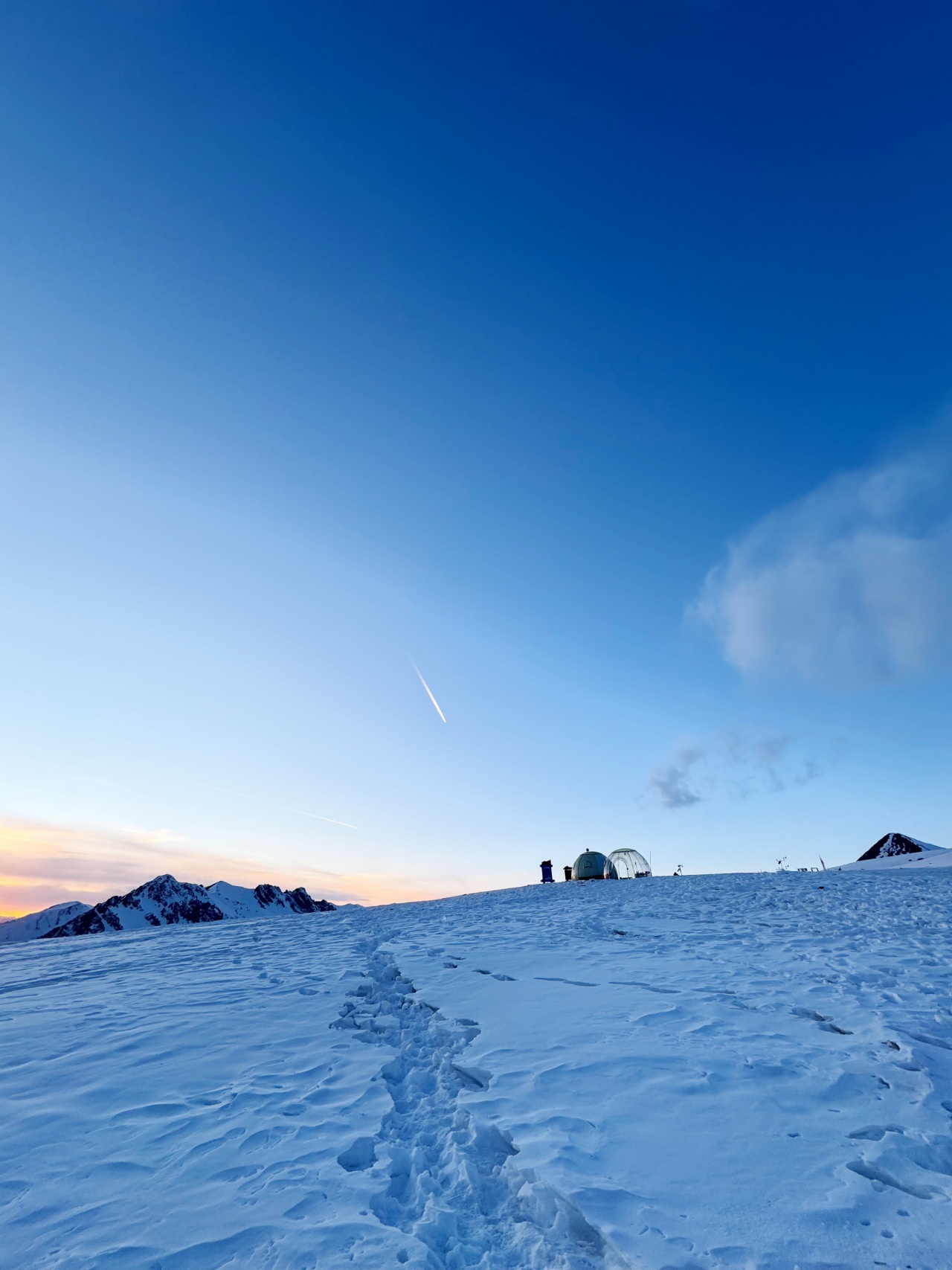 前进路线的坡度较陡,途中会有冰坡出现,需要结组攀登做好保护,不宜单行。在途中应控制好时间,最好在中午12点以前能登顶,因高原气候从中午以后天气都有较大的变化。