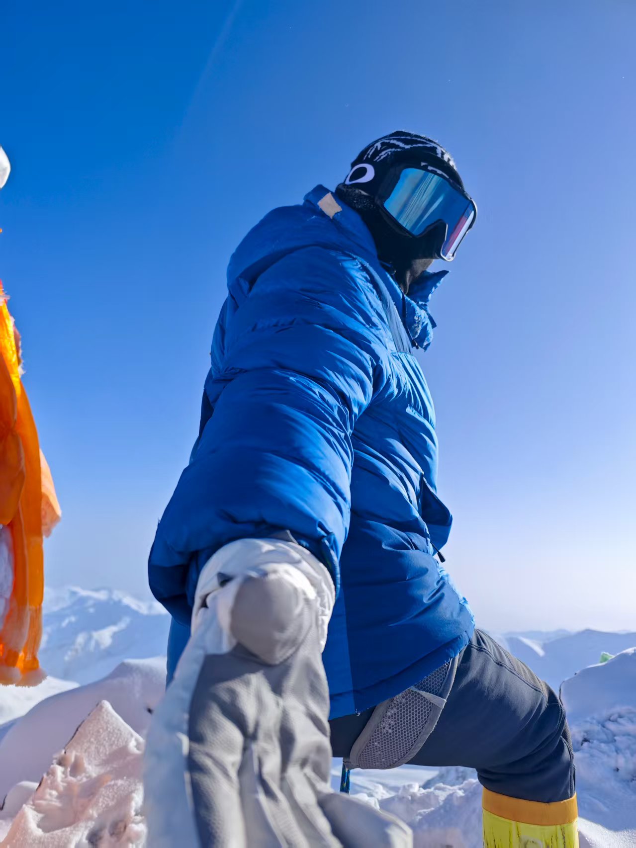 ⑤提供个人技术装备使用:睡袋、安全带、头盔、冰爪、雪套、头灯、登山杖等