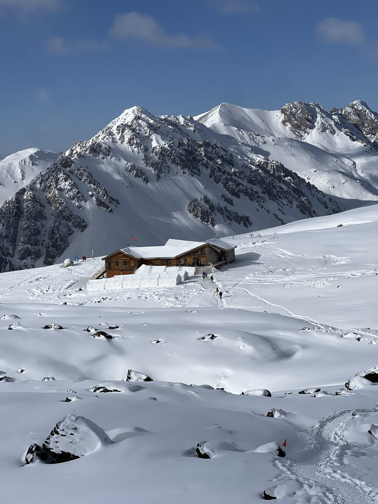 岗什卡雪峰大本营属于门源政府投资建设,设有会议厅,厨房,住宿,环保厕所,休息厅等(大本营部分手机有4G网络信号)。