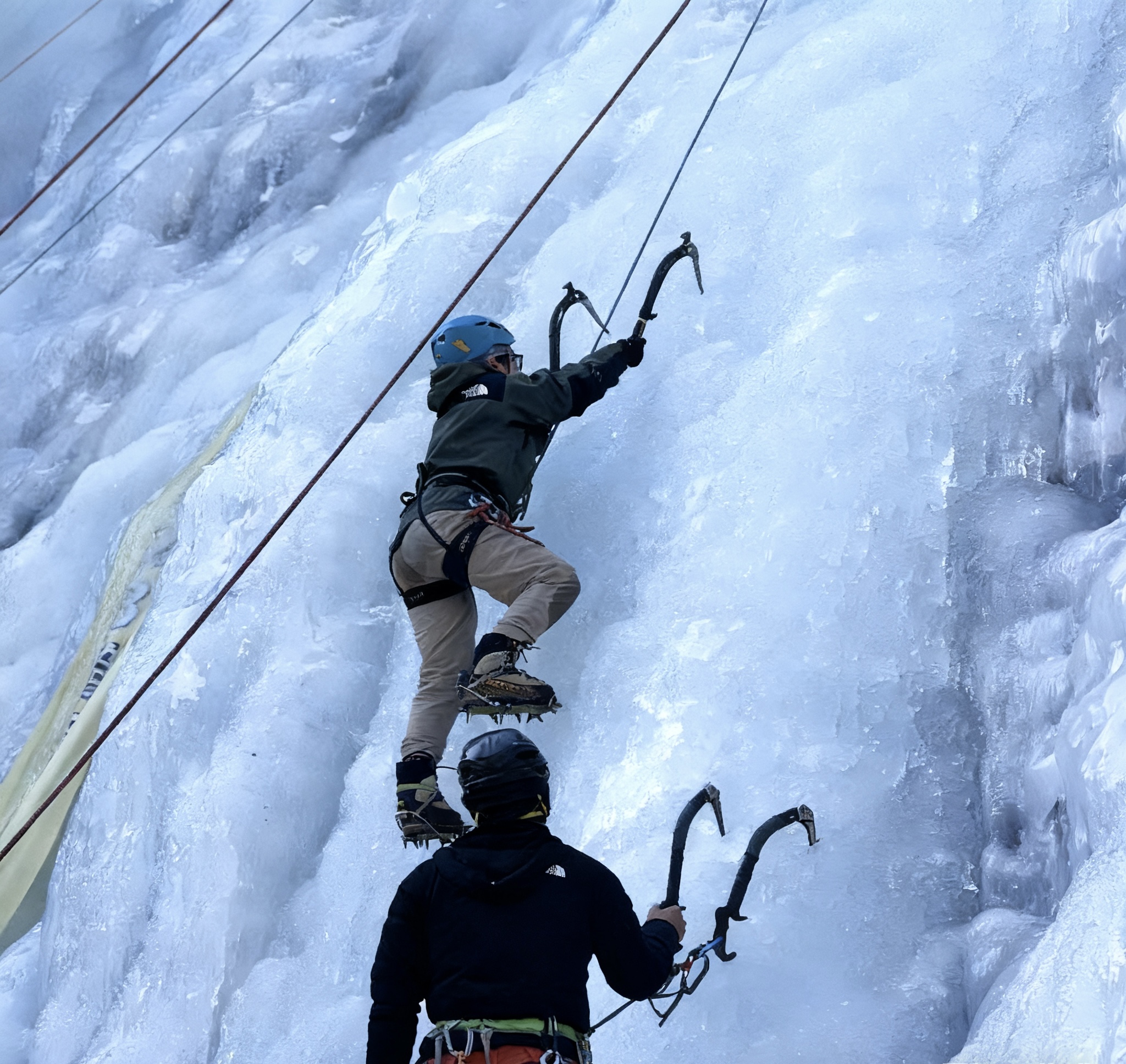 下午课程:开始高阶攀冰挑战学习多段攀登技巧和方法。