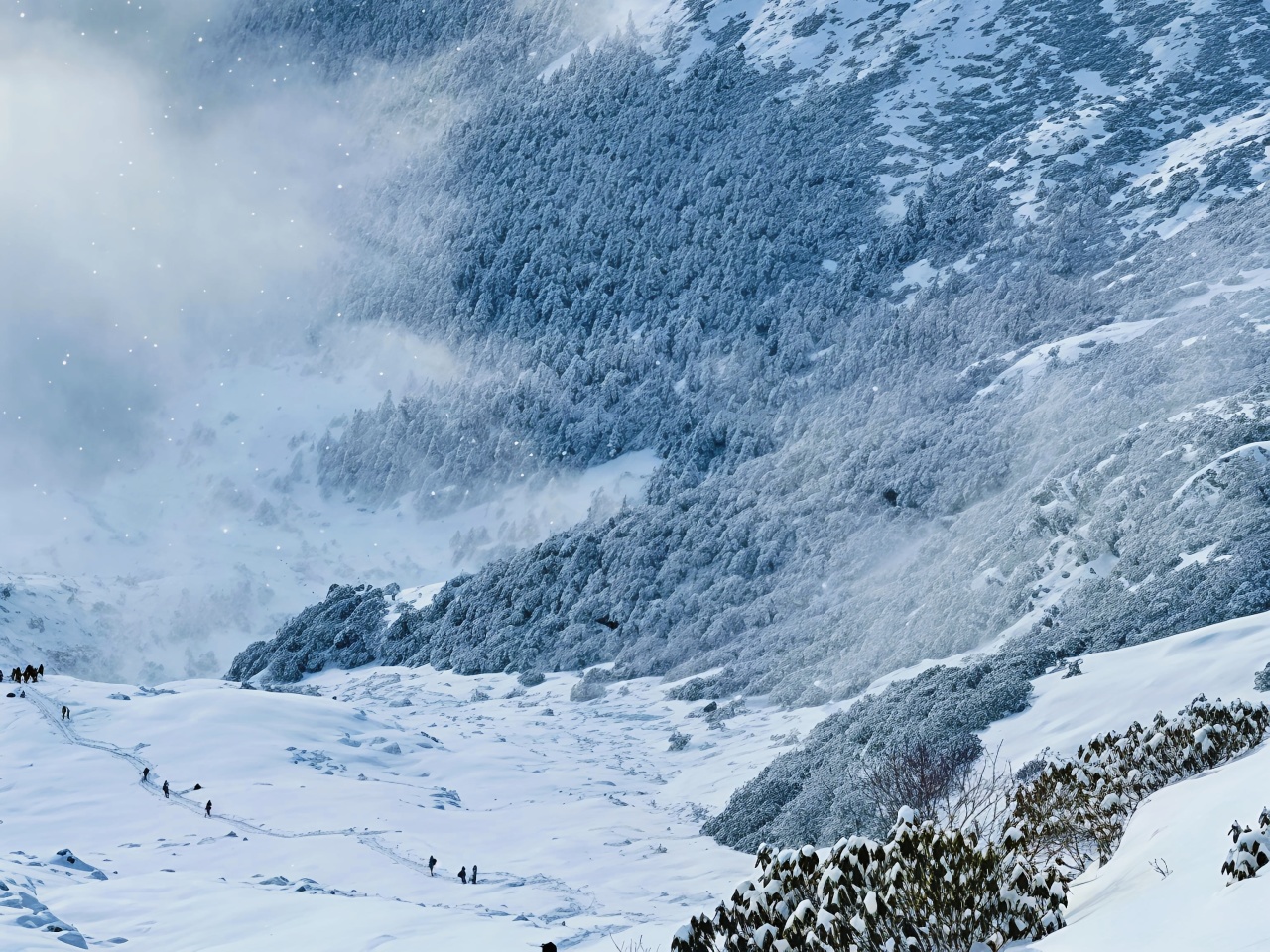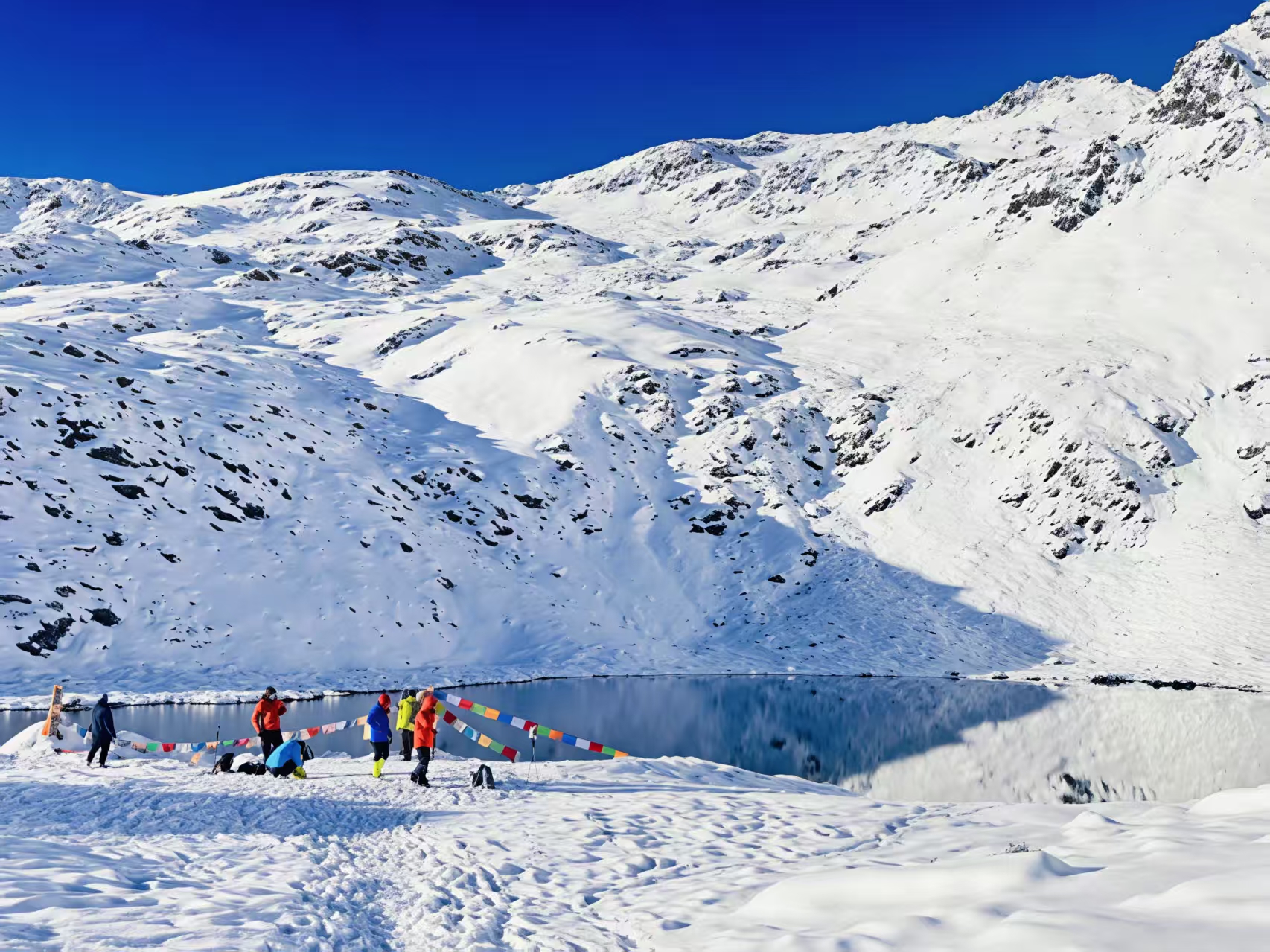 继续行走2公里后到达海拔5095m的顶峰,登顶拍照后下撤到徒步起点,大概需要4-5小时。人齐后乘车回到接待站,整理好行李,最后乘坐返程车回到成都集散点。
