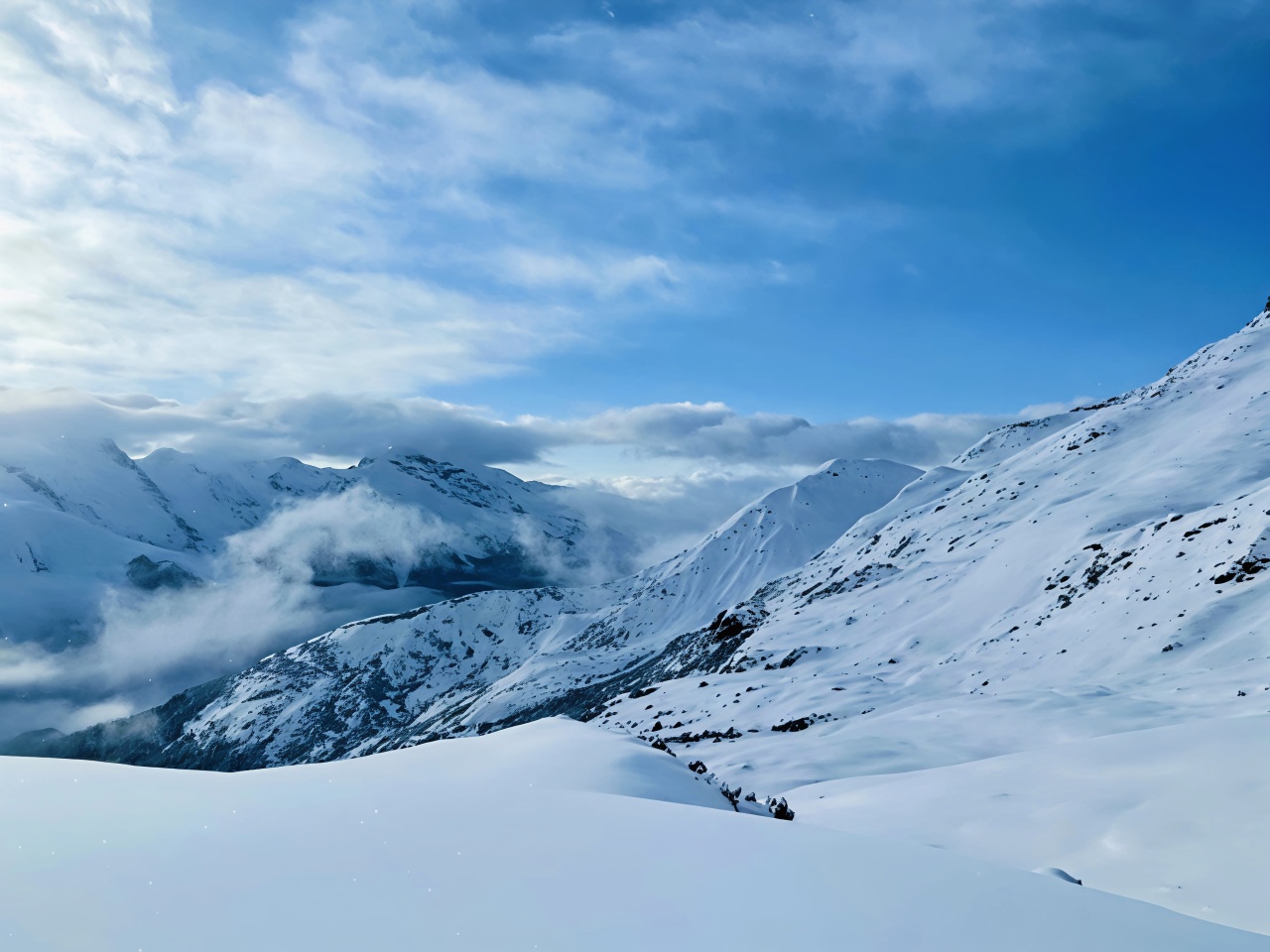 这个地区以其独特的高山湖泊群而闻名。这些海子沿山脊分布,依次为青海、带子海、娃娃海、蓝海、白海、冰川海、黄海、黑海、红海等,绵延4公里。而今随着气候变化,不少海子都已接近干涸...