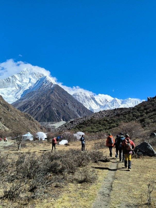 早餐后轻装出发,公共物品及队员大包由马匹驮运,队员轻装前往大本营。途径贡嘎寺,需自备路餐,预计下午3点左右到达BC营地。