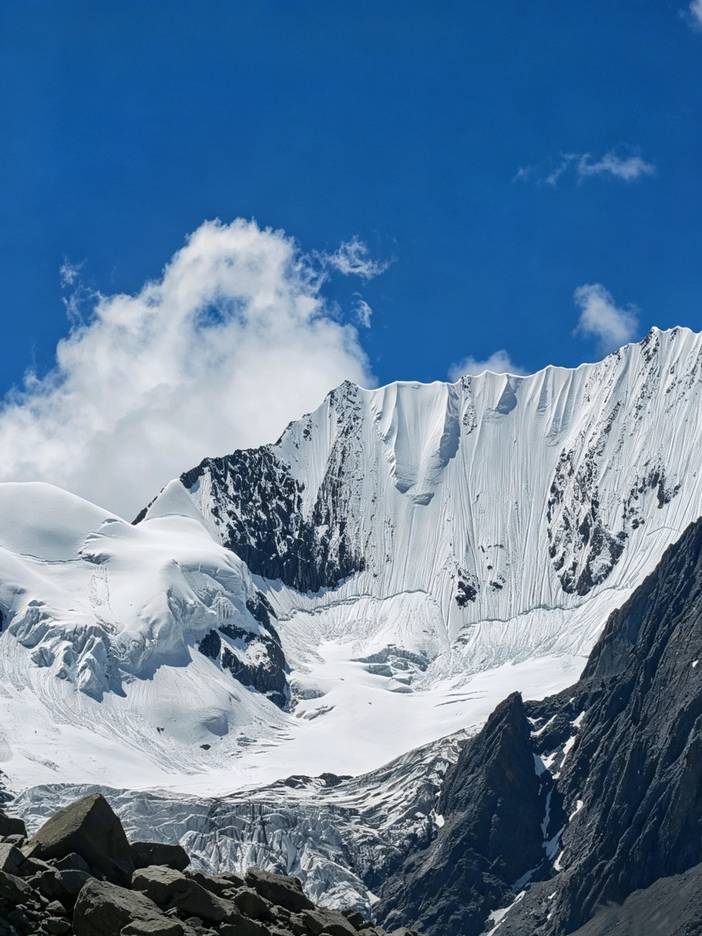 该山峰难度中等偏高,属技术型山峰,路线从BC出发经 C1、C2,应对冰岩混合路段与60°+ 冰雪坡横切段至顶峰,攀登需具备5000米技术雪山经验、熟练的冰上与绳索技术及良好的高海拔适应能力;既是高海拔技术攀登的理想试炼场,也是观赏冰川冰湖风光的热门目的地。
